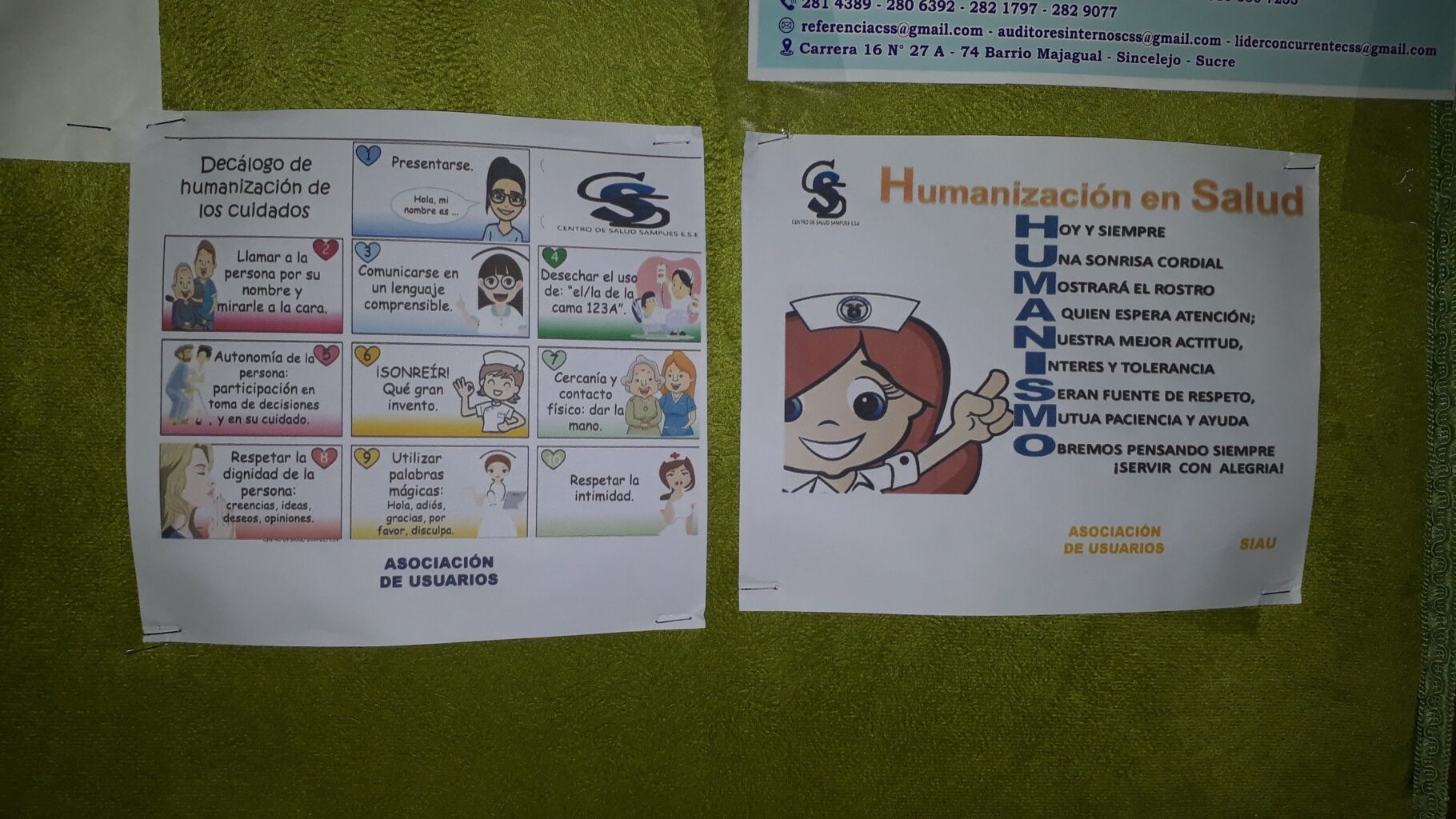 la asociación de usuarios y la oficina SIAU del CENTRO DE SALUD desarrollaron el dia de hoy una campaña de humanización de los servicios, con el objeto de seguir fomentando las relaciones basadas en el respeto y la dignidad, no solamente del paciente y su familia, sino también de los compañeros de trabajo